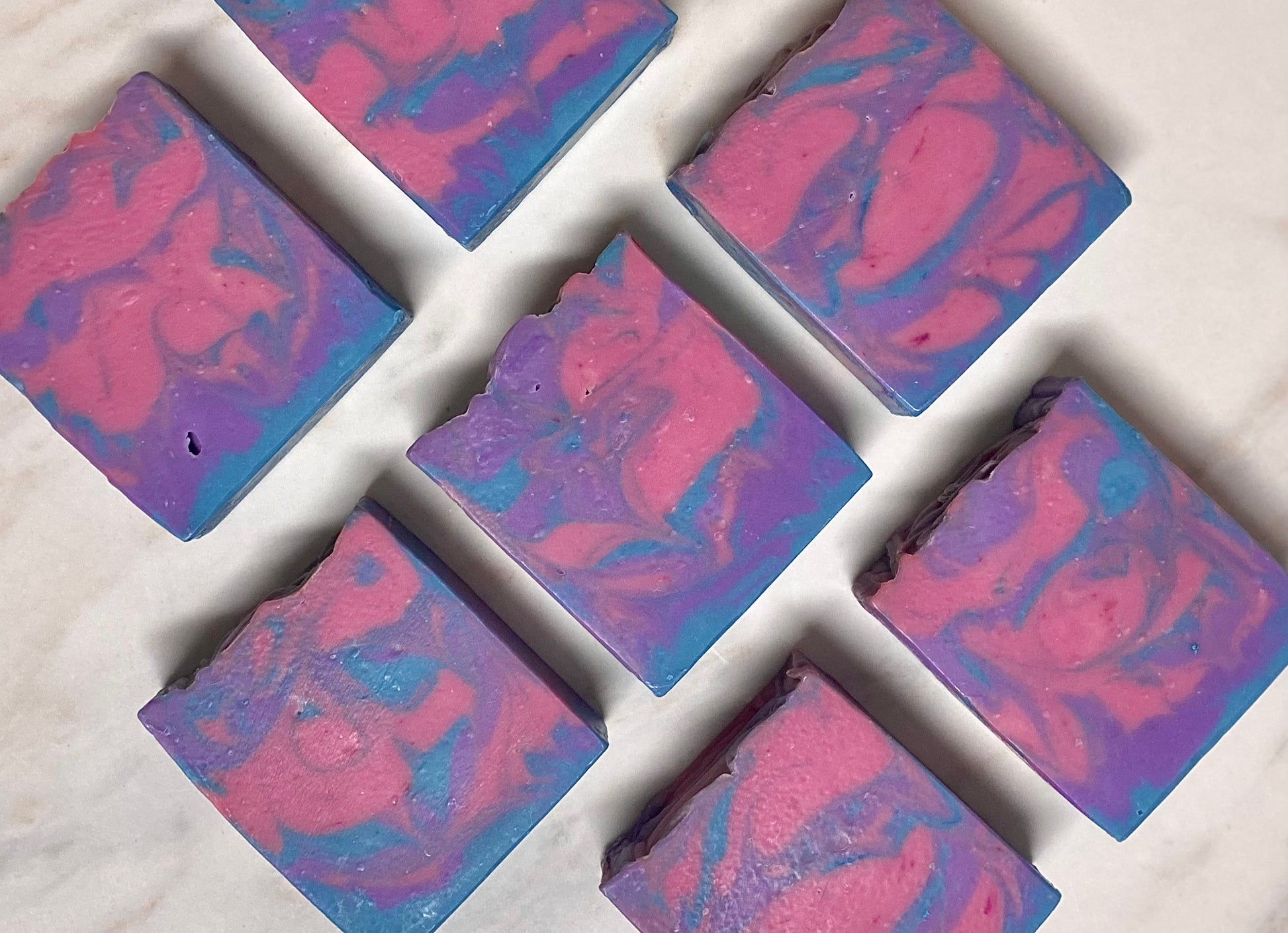 Ingredients: Distilled Water, Saponified oils of (Lard, Olive Oil, Coconut Oil, Shea Butter, Avocado Oil, Castor Oil) Sodium Hydroxide, Skin-safe Fragrance, Kaolin clay, Skin Safe Colorant.
