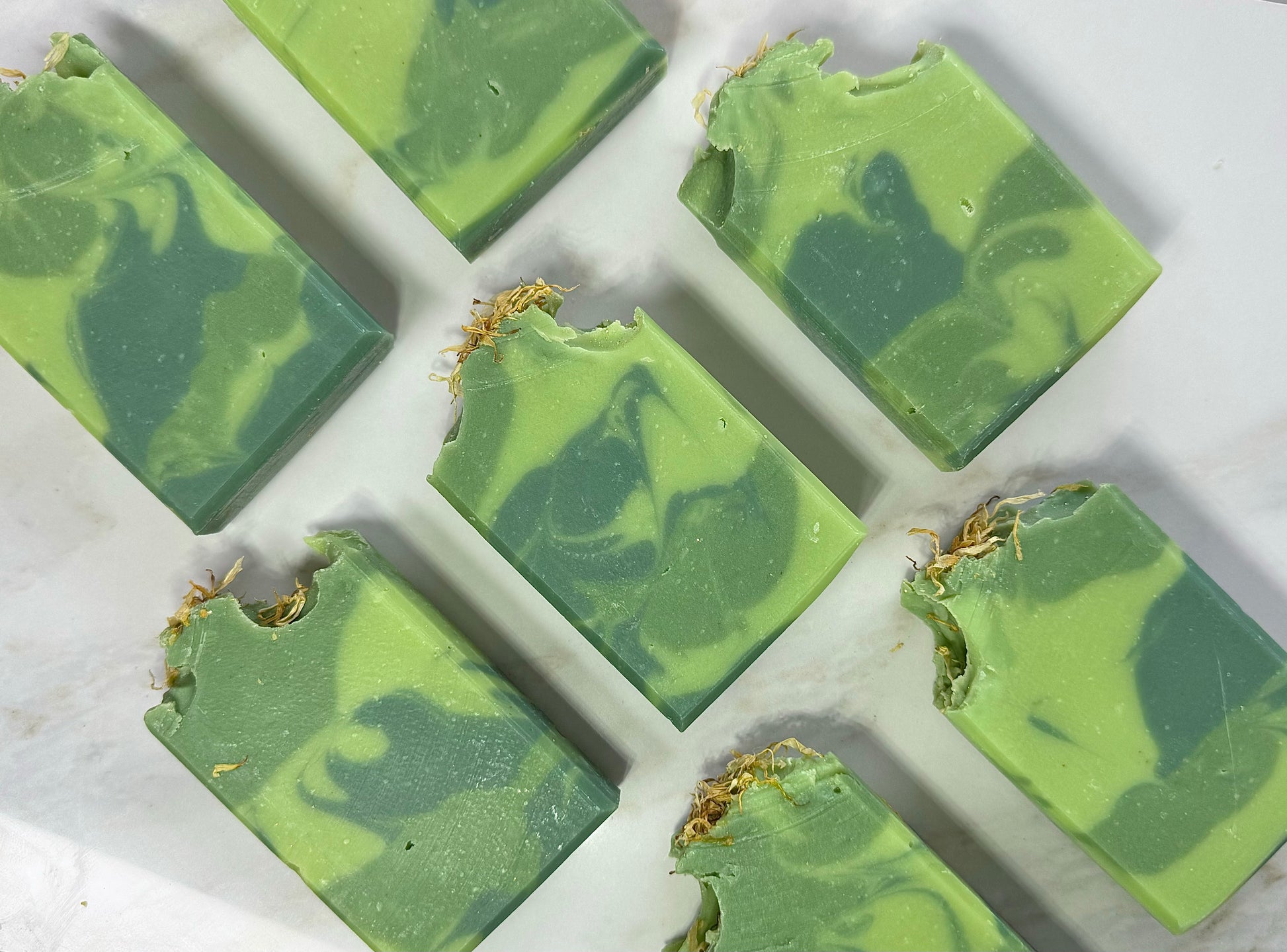 Distilled water, Saponified oils of (Manteca, Coconut oil, Shea Butter, Avocado Oil, Castor oil) Sodium hydroxide, Coconut Milk, Kaolin clay, Mica, Fragrance.